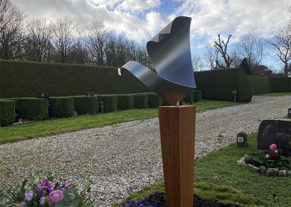Een artistiek gedenkteken met een hart voor een jonge vrouw. Een hart dat niet gesloten is maar een open hart.