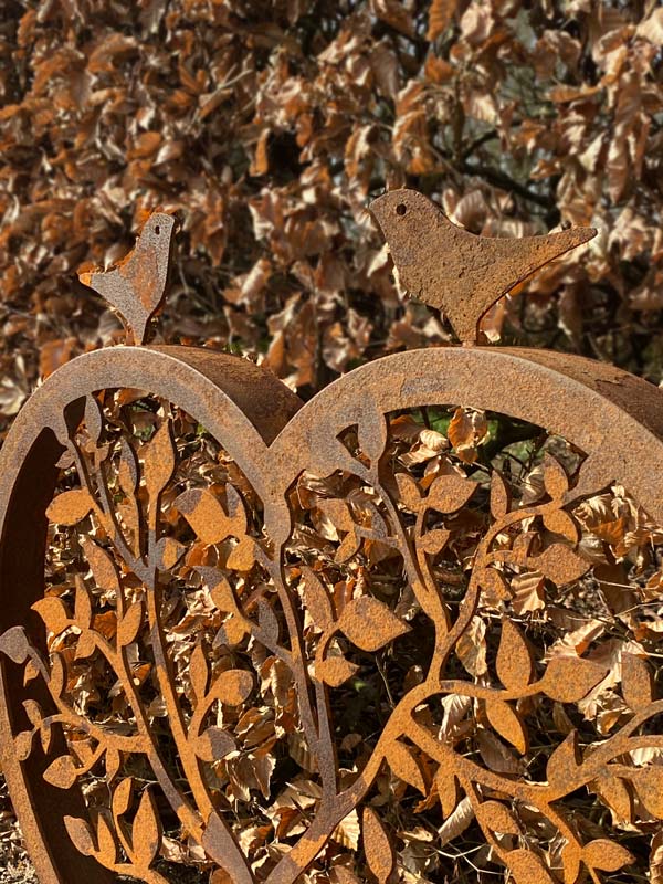 Het hart en de vogels zijn gemaakt van cortenstaal. Dit staal vormt na verloop van tijd een warme roestbruine beschermlaag die goed past bij de natuurlijke uitstraling van het monument.