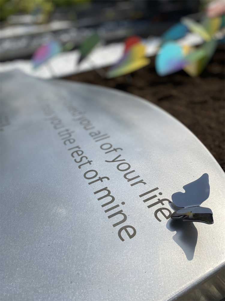Een mooie dichtregel is in het RVS geëtst: “I have loved you all of my life, I wil miss you the rest of mine