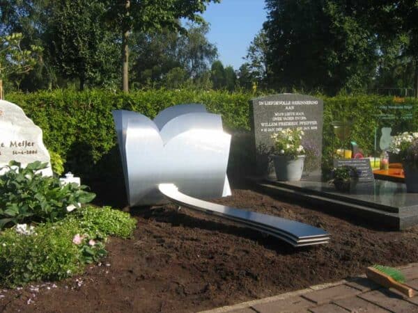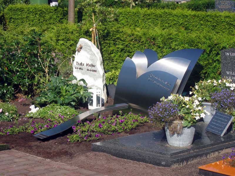 De ouders verzorgen het graf van hun dochter heel regelmatig. Vrijwel altijd zijn er verse bloeiende bloemen op te vinden. Het gedenkteken biedt daarom bewust ruimte voor veel bloemen en planten. Dankzij de vele bloemen in combinatie met het stralende RVS is het grafmonument een blikvanger tussen de andere graven.