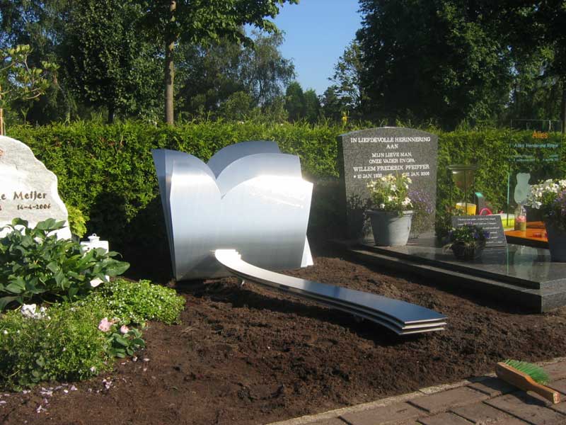 De ouders zochten een mooi ontwerp voor haar graf dat zou passen bij hun dochter. In samenspraak ontstond een mooi ontwerp en een RVS grafmonument dat paste bij de verwachtingen en de wensen van de ouders. Het ontwerp bestaat uit drie harten achter elkaar die samen met elkaar een bloem vormen.