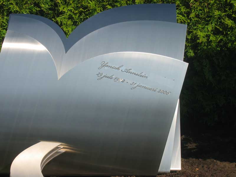Met het monument maakten we ook een uniek en bijzonder boekje. Dat kreeg de vorm van het gedenkteken voor Yanick. Het hele proces van de eerste schetsen tot aan de plaatsing van het RVS grafmonument is beschreven en geïllustreerd met veel foto’s.
